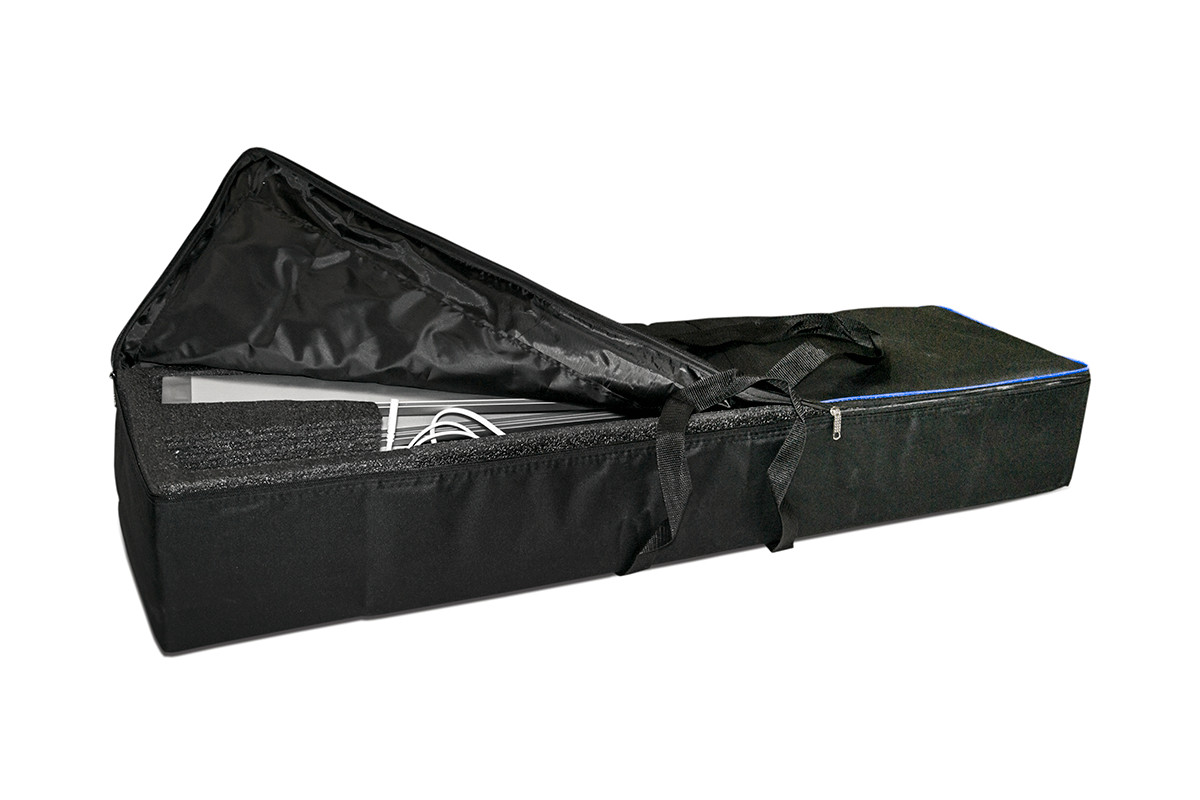 Díky integrovanému LED osvětlení je vaše sdělení dobře viditelné i ve velkých prostorách. Součástí sady je odolná polyesterová transportní taška, která chrání jednotlivé komponenty při skladování i přepravě a zároveň usnadňuje manipulaci.