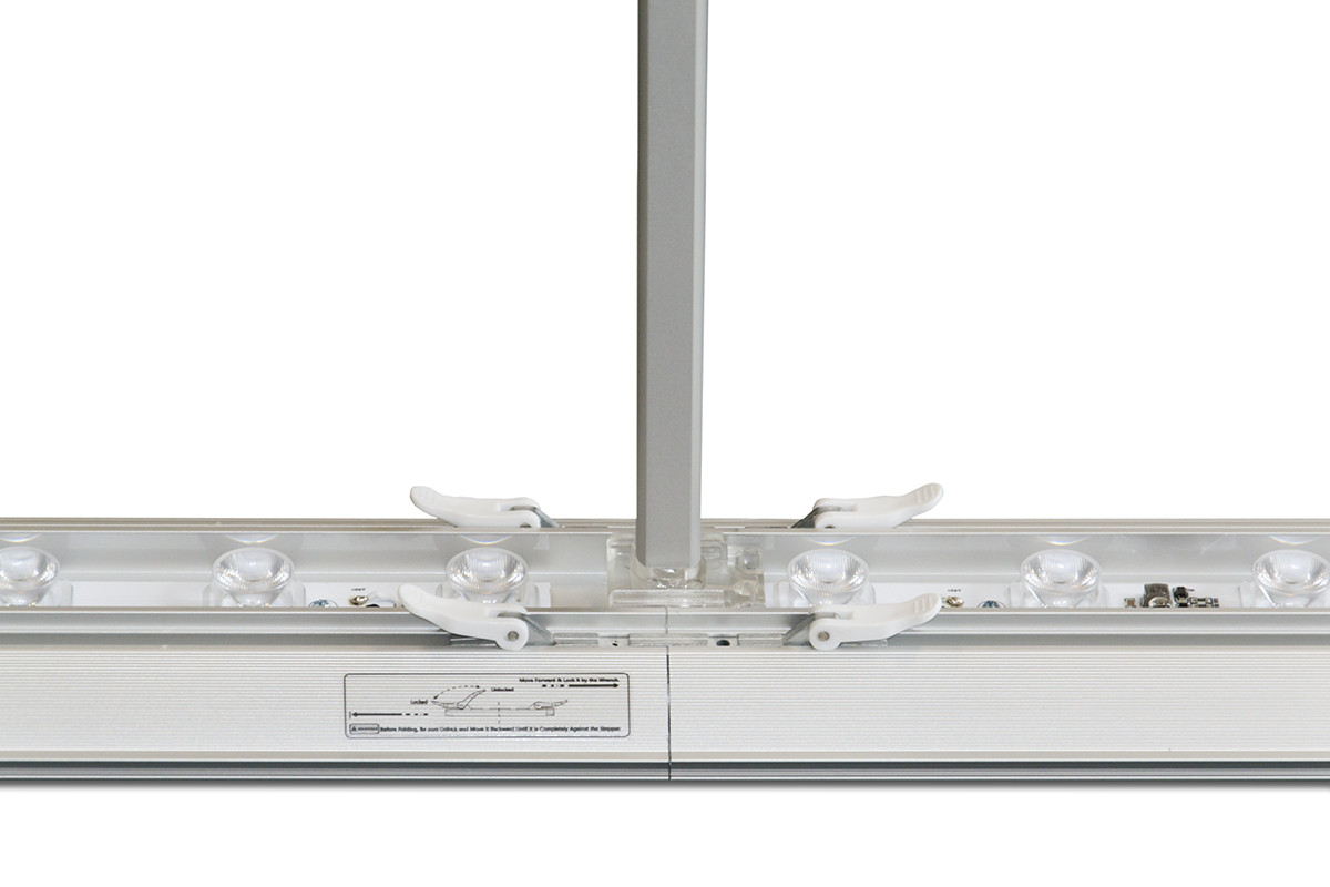 Konstrukce založená na hliníkových profilech o šířce 120 mm zaručuje mimořádnou stabilitu, zatímco beznástrojová montáž pomocí rychlospojek umožňuje rychlé a pohodlné sestavení. Textilní grafika uchycená systémem SEG (silicone edge graphic) zajišťuje snadnou instalaci a dokonale napnutý potisk na obou stranách stěny.