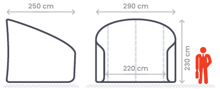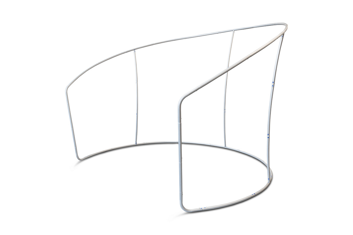 FABRIC ROUND je trubkový systém o průměru 32 mm, který se vyznačuje zajímavým tvarem. Textilní materiál je napnutý přes konstrukci a je vybaven zipem. Každý prvek systému je označen číslem, aby byla montáž snadná a rychlá. Celá sada je zabalena do praktické transportní tašky.