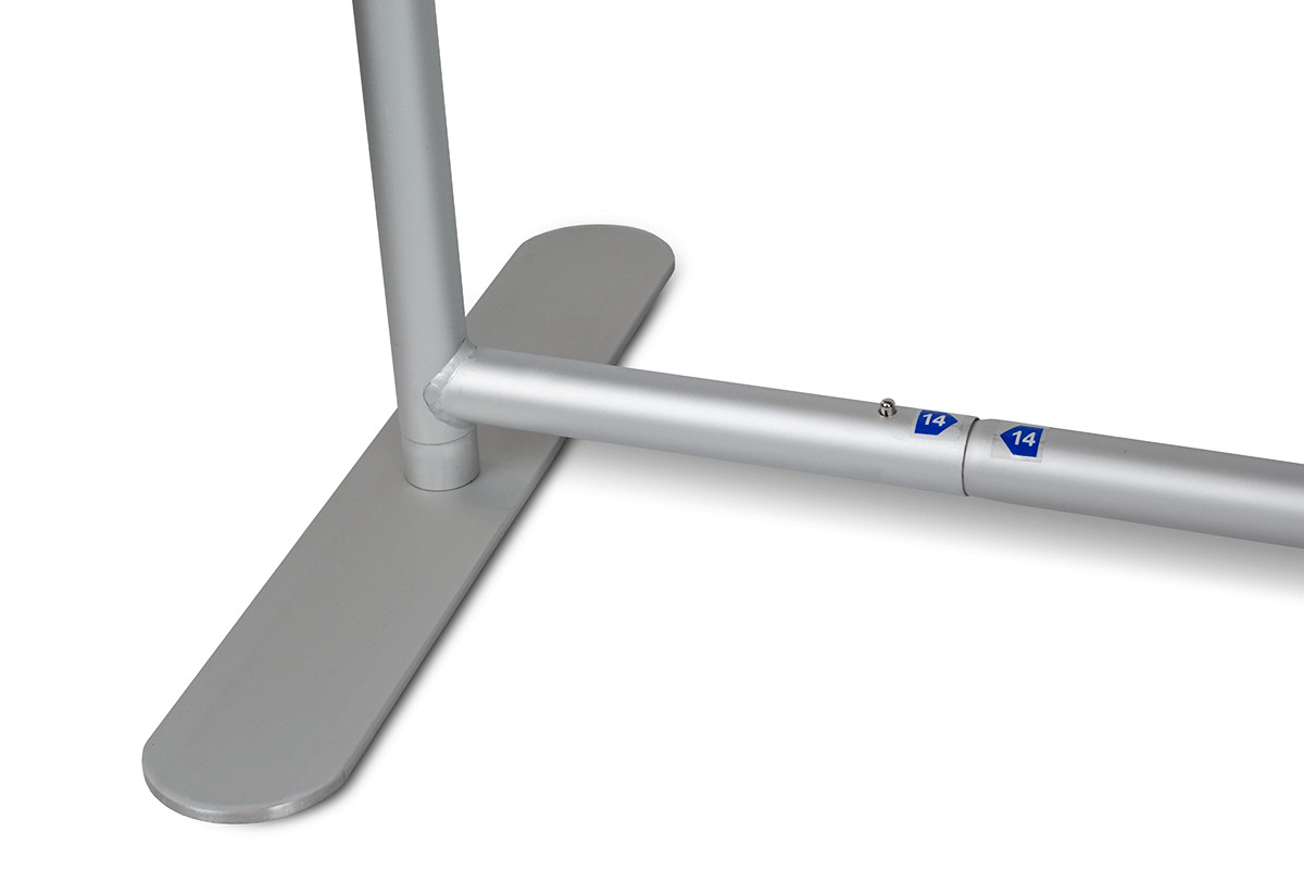 Hliníkový trubkový systém o průměru 32 mm, doplněný o stabilizační nohy.