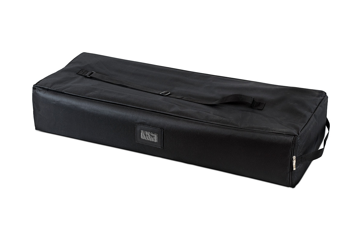 Rám je vyroben z eloxovaného hliníku, který zajišťuje odolnost a stabilitu. Grafika je uchycena pomocí systému se silikonovým lemem, což umožňuje rychlou, bezpečnou a bezchybnou instalaci. Celá sada se pohodlně sbalí do pevné polyesterové transportní tašky pro snadné přenášení a skladování.