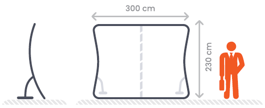 FABRIC WALL U je hliníkový trubkový systém o průměru 32 mm se stabilizačními nohami. Polyesterový materiál (se zipem našitým ve spodní části) je natažen na konstrukci stěny. Všechny prvky konstrukce jsou označeny čísly, aby byl proces montáže jednoduchý a rychlý. Celá sada je zabalena v praktické transportní tašce.